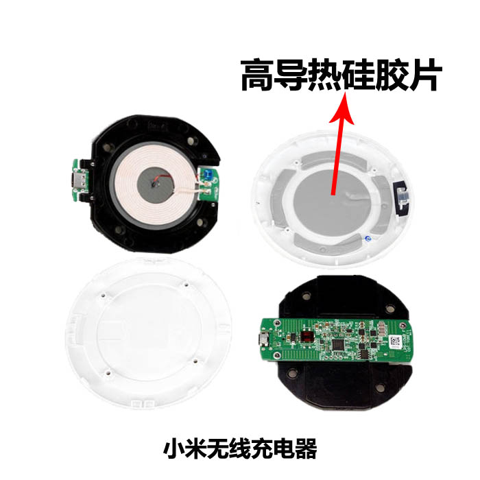 無線充是一種利用智能通電傳輸的無線充電技術,無線充電技術打破了傳統的連接線充電,提高了充電的效率和便捷性,在過去的2017年手機無線充得到廣泛的認可,使用率也越來越高,一度成為手機充電行業的爆款產品,無線充由于其體積小的原故,內部電子部件的工作溫度是首要需要解決的,深圳戈埃爾科技有限公司專生生產無線充導熱墊片等導熱散熱材料,可為無線充的研發生產提供一整套的無線充散熱方案。以下是無線充的拆解及導熱應用案例。