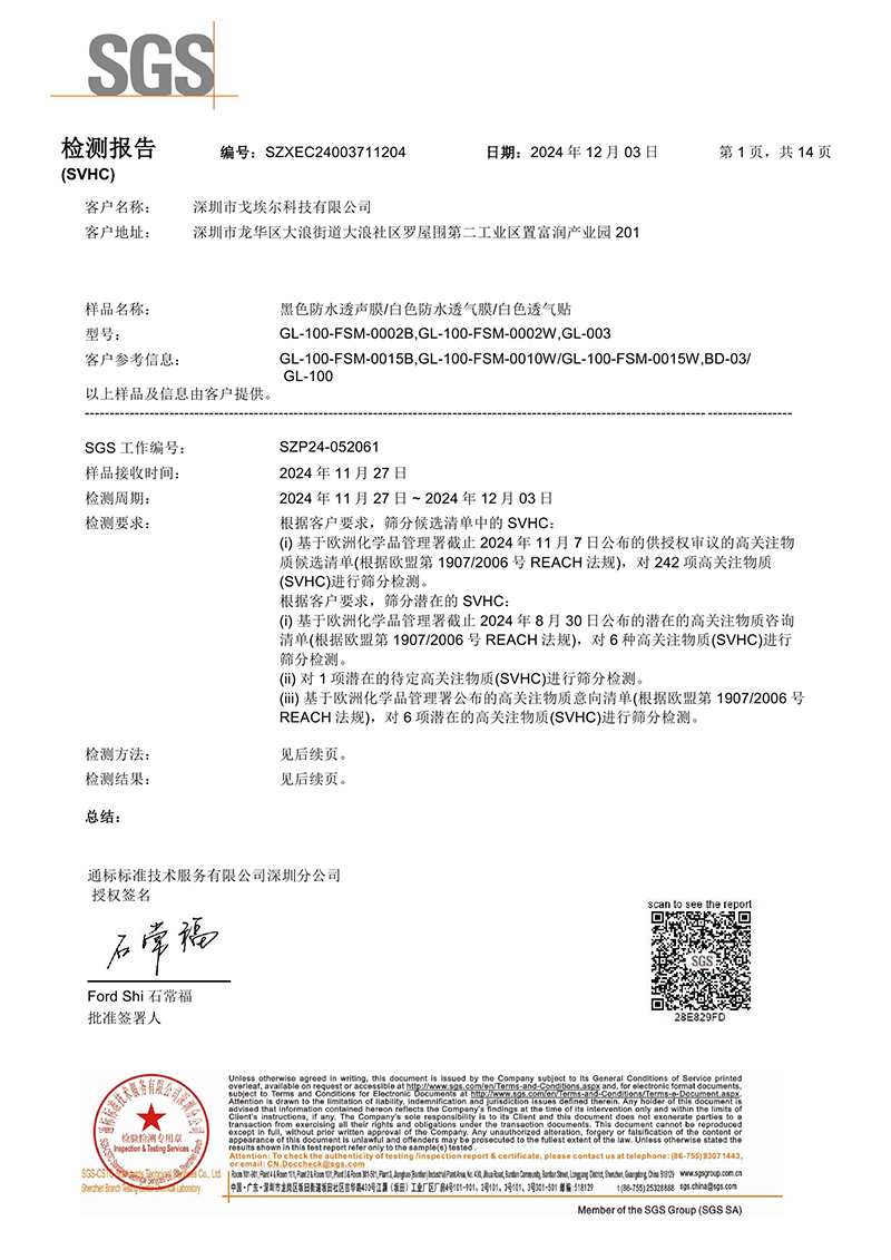 提供防水透氣、透聲膜解決方案