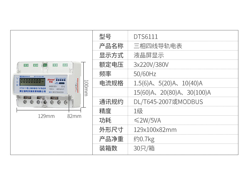型號:DTS6111-7三相導軌式電表